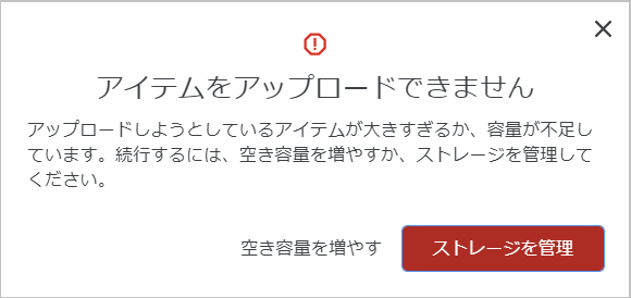 共有ドライブから不要なファイルを削除するか、保存容量の上限値を変更することで、