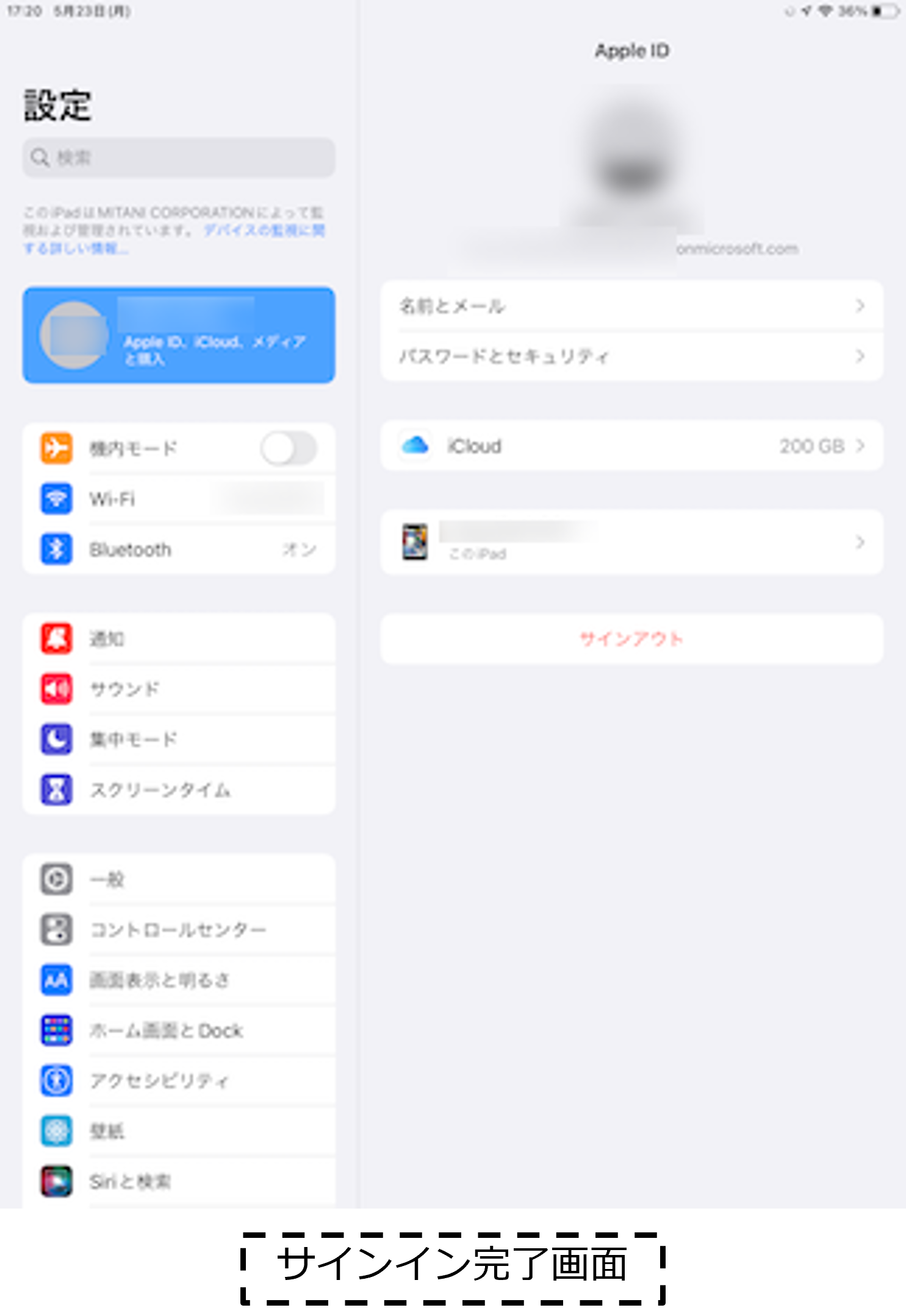 4-1.iPadの「設定」 -> 「iPadでサインイン」からサインインを試みます。